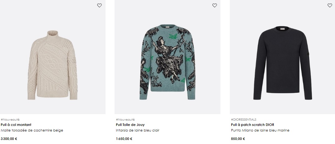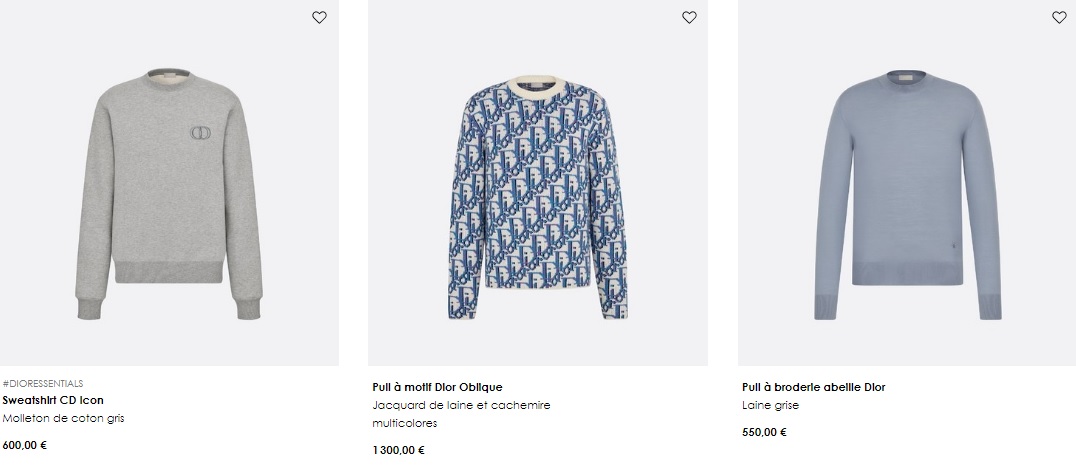 남자 상의 중 디올의 니트, 스웨트 셔츠의 종류와 가격에 대해서 소개 및 공유합니다.