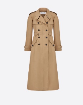 : 더블 버튼, 허리띠, 건 플랩, 라펠이 달린 칼라, 큰 주머니, 소매 및 어깨의 탭이 있는 것이 특징인 레인코트입니다.