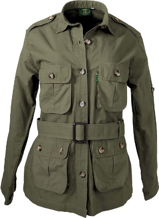 사파리(Safari jacket) : 긴 소매의 가벼운 셔츠재킷 입니다. 평직물로 만들며 허리띠와 4개의 주머니가 있습니다.