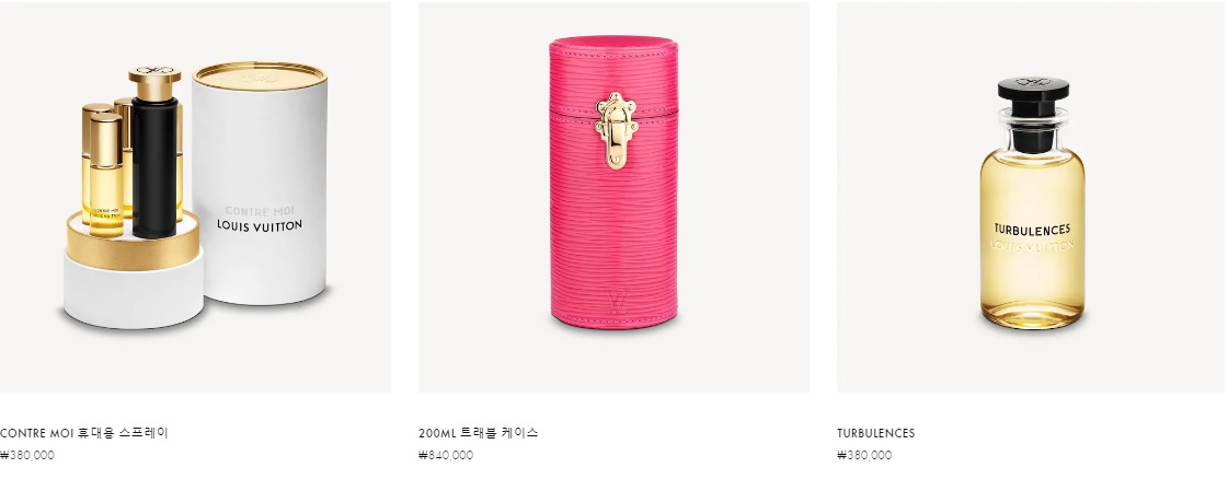 HEURES D'ABSENCE ₩380,000 미니어처 세트 ₩470,000 LV 에스칼 100ML 트래블 케이스 ₩820,000