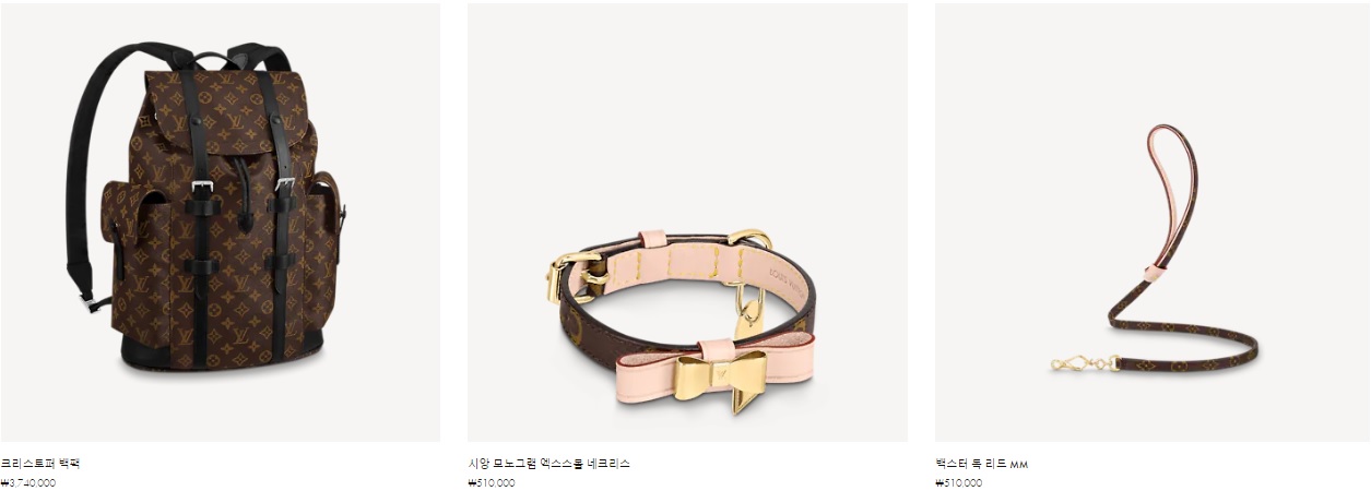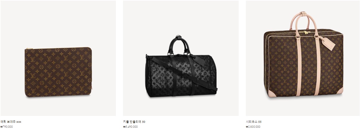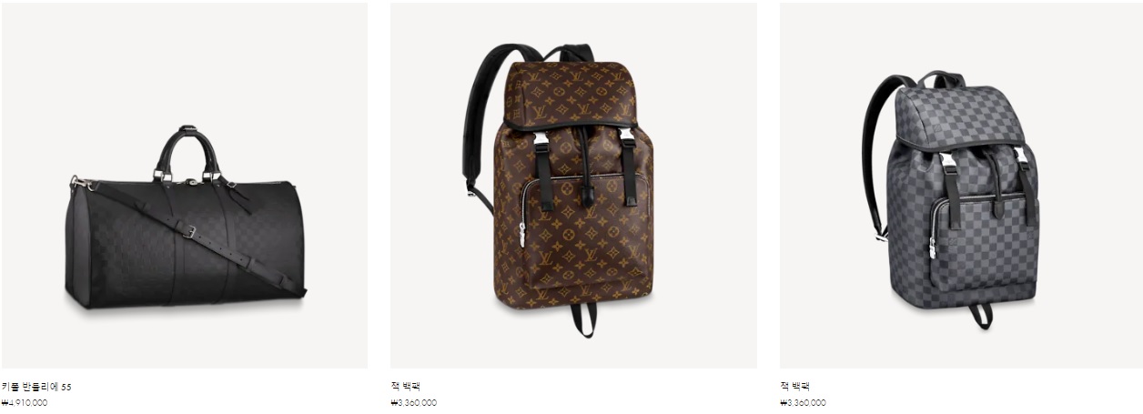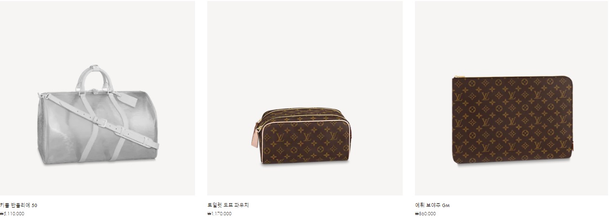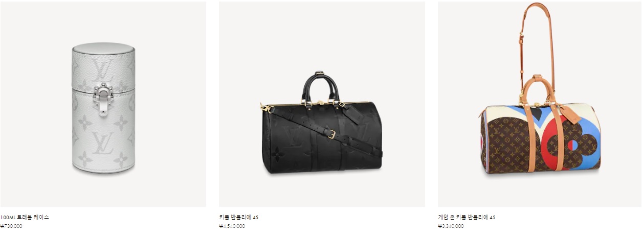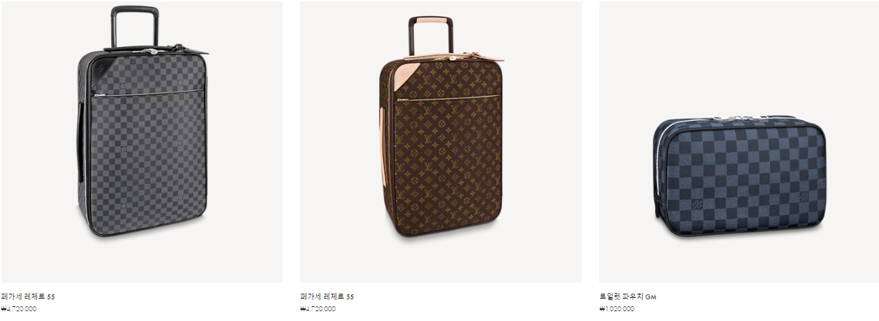 오버나이트 ₩4,520,000 토일렛 파우치 GM ₩1,260,000 패스포트 커버 ₩490,000