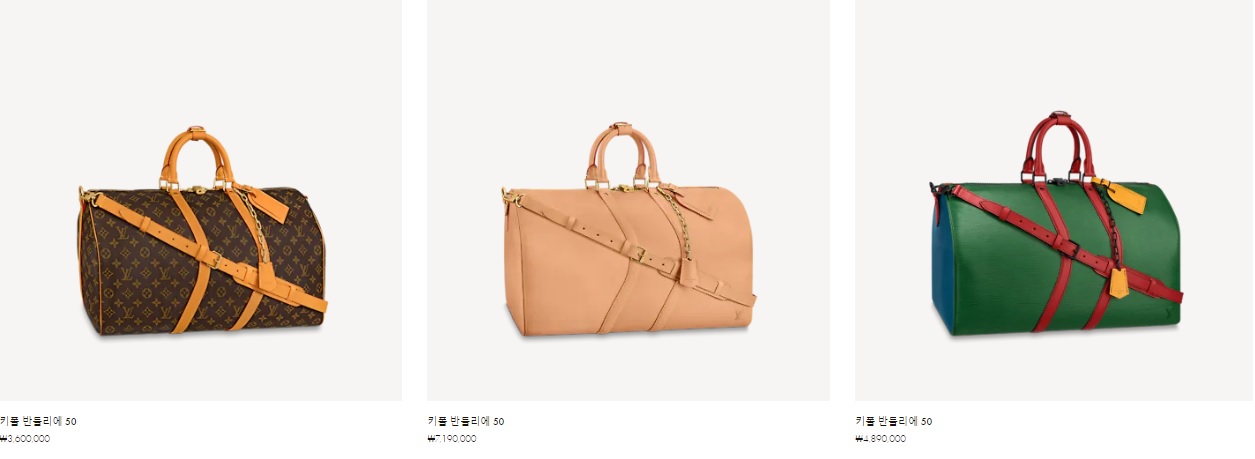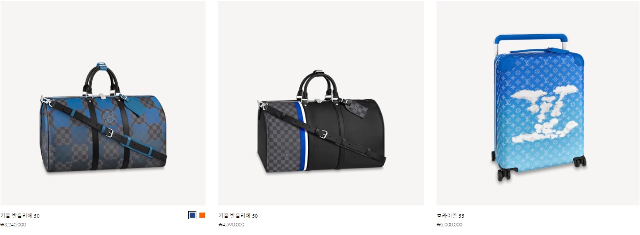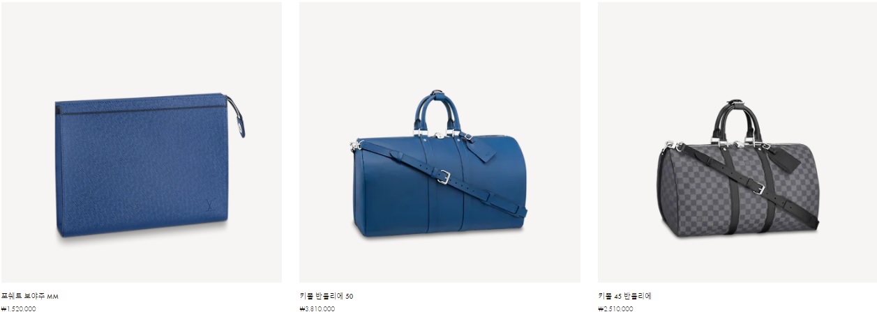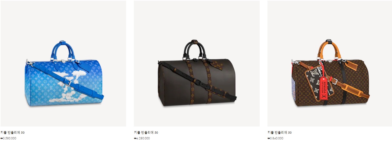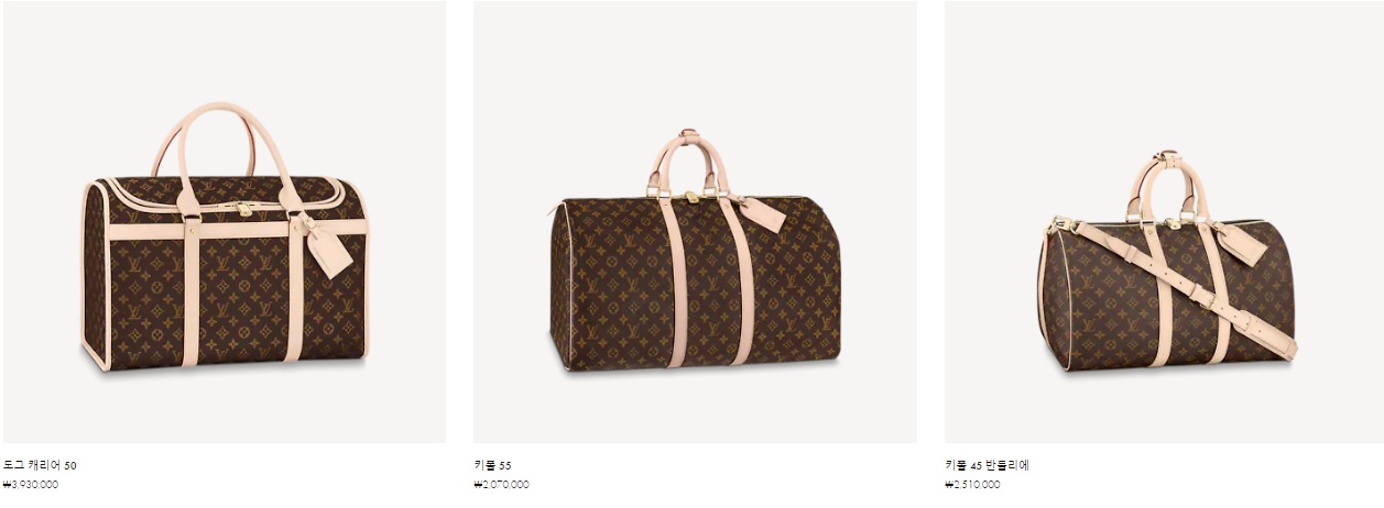 킹 사이즈 토일레트리 백 ₩1,130,000 키폴 55 반둘리에 ₩2,570,000 캐리올 ₩2,310,000