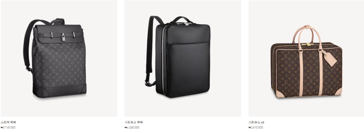 크루저 백 45 ₩3,550,000 시가렛 케이스 ₩350,000 크리스토퍼 백팩 ₩3,740,000