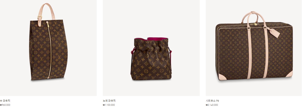 슈 파우치 ₩960,000 노에 파우치 ₩1,100,000 시리우스 70 ₩3,140,000