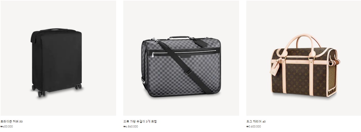 호라이즌 커버 50 ₩400,000 의류 가방 옷걸이 3개 포함 ₩4,860,000 도그 캐리어 40 ₩3,600,000