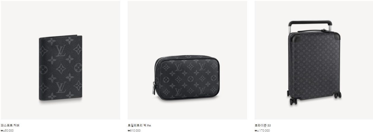 패스포트 커버 ₩450,000 토일레트리 백 PM ₩810,000 호라이즌 55 ₩4,170,000
