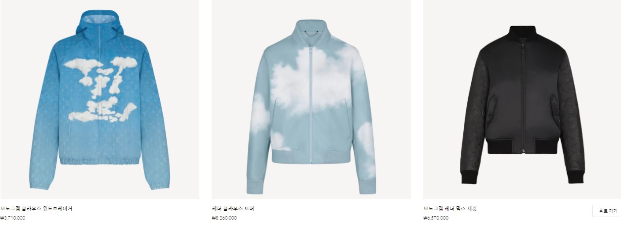 모노그램 클라우즈 윈드브레이커 ₩3,710,000 레더 클라우즈 보머 ₩8,260,000 모노그램 레더 믹스 재킷 ₩6,570,000