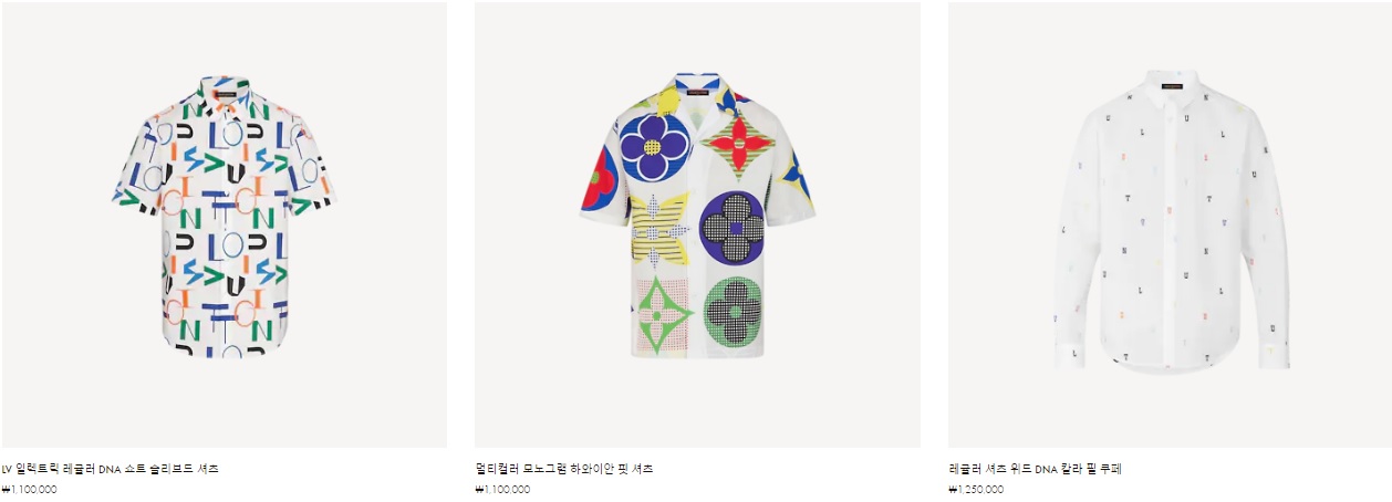 LV 일렉트릭 레귤러 DNA 쇼트 슬리브드 셔츠 ₩1,100,000 멀티컬러 모노그램 하와이안 핏 셔츠 ₩1,100,000 레귤러 셔츠 위드 DNA 칼라 필 쿠페 ₩1,250,000