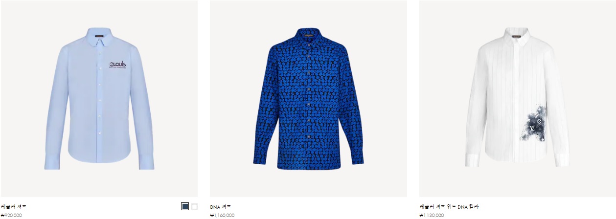 레귤러 셔츠 ₩920,000 DNA 셔츠 ₩1,160,000 레귤러 셔츠 위드 DNA 칼라 ₩1,130,000