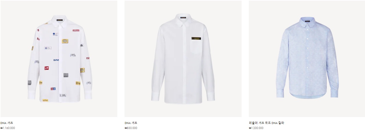 DNA 셔츠 ₩1,160,000 DNA 셔츠 ₩830,000 레귤러 셔츠 위드 DNA 칼라 ₩1,200,000