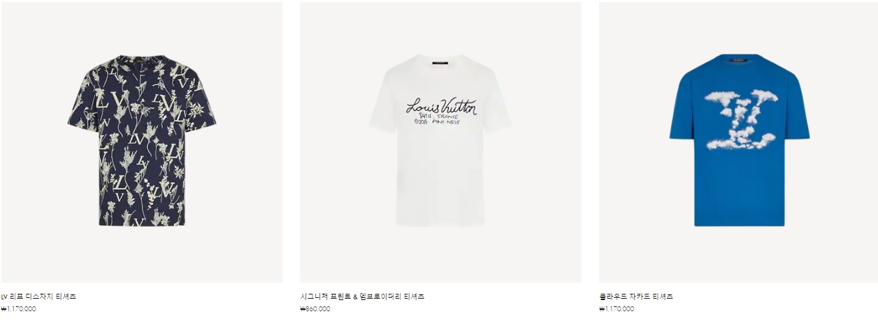 모노그램 그라디언트 티셔츠 ₩1,190,000 엠브로이더드 LV 플라워 티셔츠 ₩860,000 플라워 프린티드 티셔츠 ₩860,000