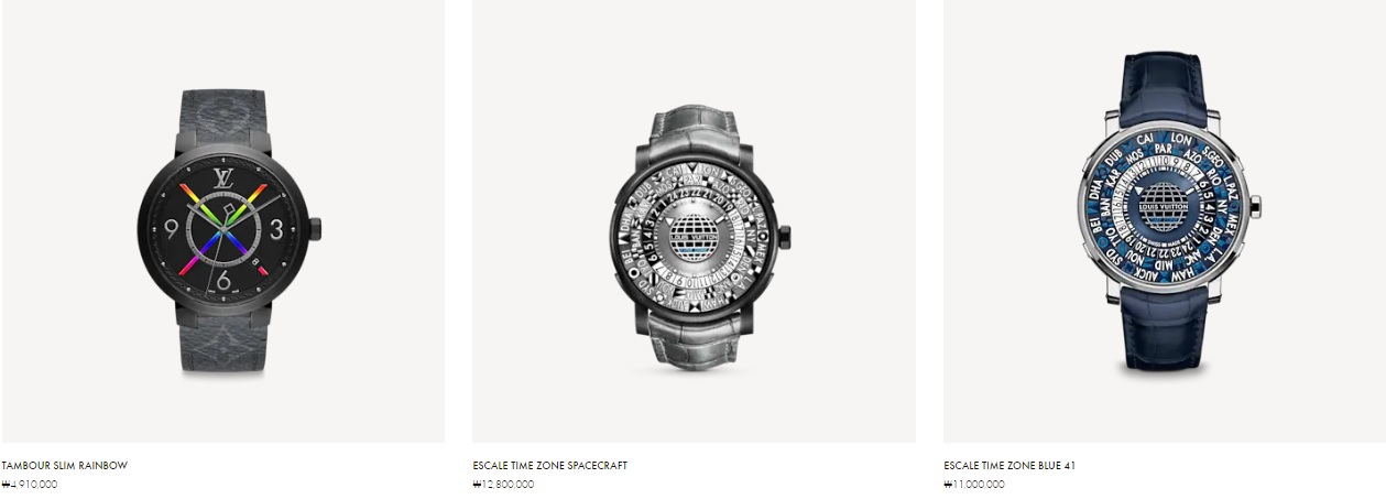 TAMBOUR SLIM RAINBOW ₩4,910,000 ESCALE TIME ZONE SPACECRAFT ₩12,800,000
