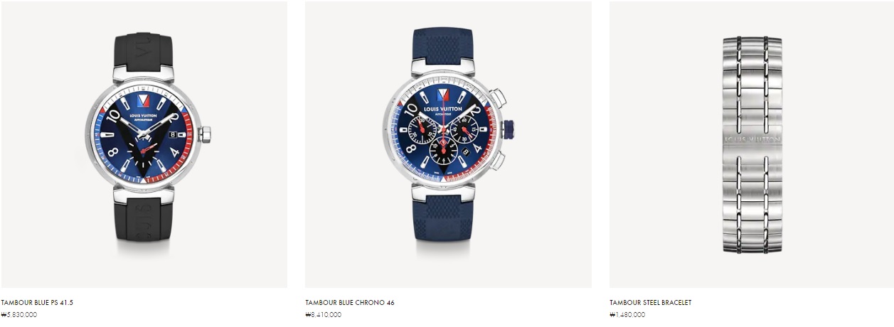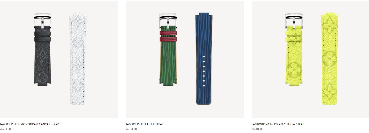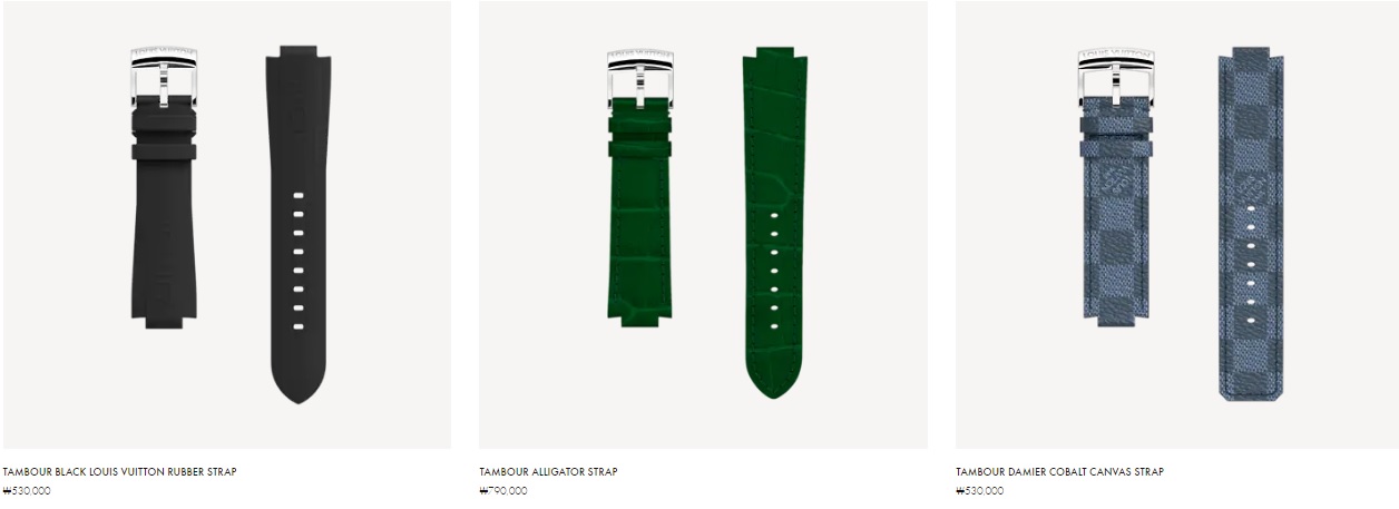 TAMBOUR BLACK LOUIS VUITTON RUBBER STRAP ₩530,000 TAMBOUR ALLIGATOR STRAP ₩790,000 TAMBOUR DAMIER COBALT CANVAS STRAP ₩530,000