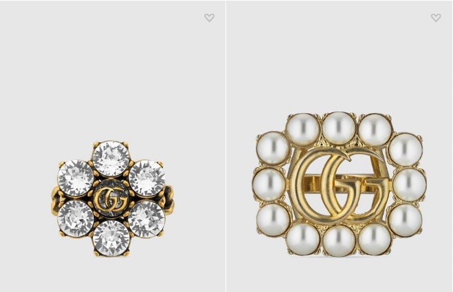 크리스털 더블 G 반지 ₩ 530,000 진주 더블 G 반지 ₩ 610,000