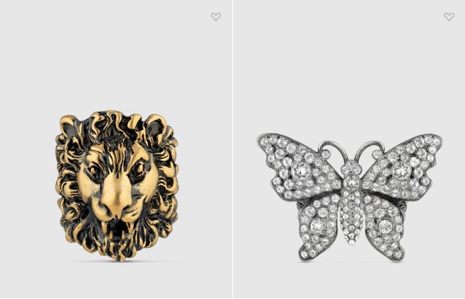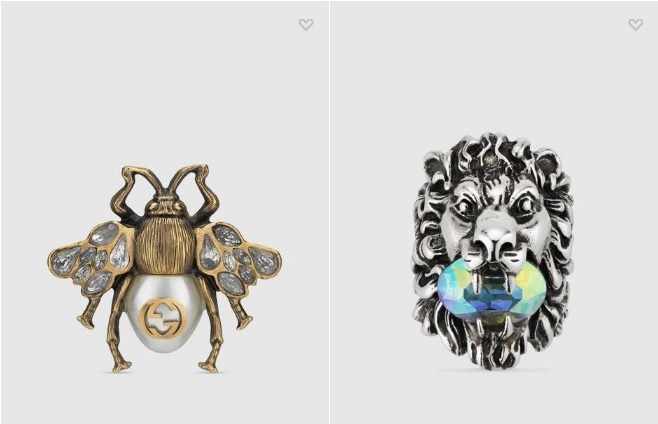 크리스털 및 펄 디테일의 벌 모양 반지 ₩ 770,000 크리스털 디테일의 라이언 헤드 반지 ₩ 570,000
