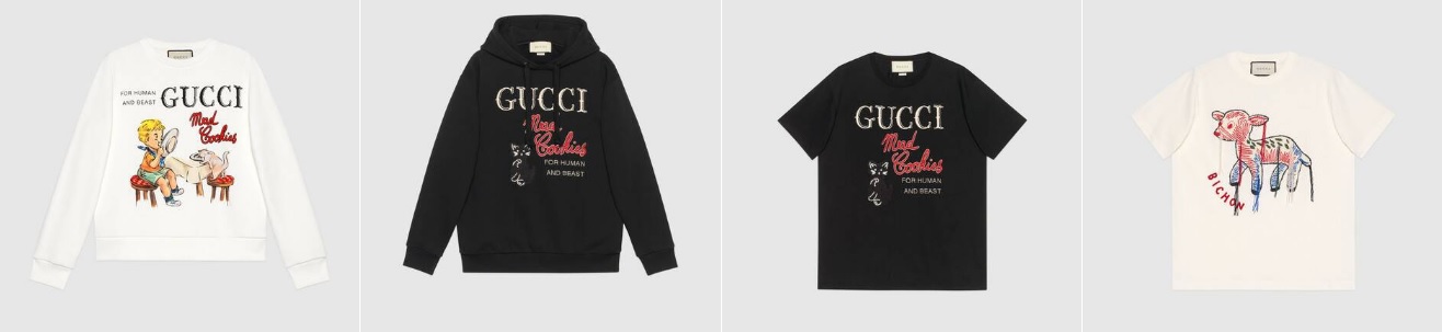 구찌 'Mad Cookies' 프린트 티셔츠 ₩ 890,000 아기 사슴 패치 티셔츠 ₩ 890,000