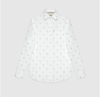GG 자수 디테일의 코튼 셔츠