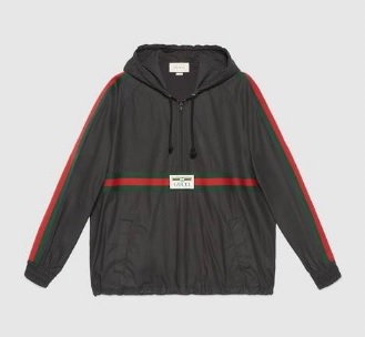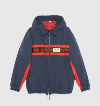 구찌 라벨이 달린 코팅 코튼 윈드브레이커