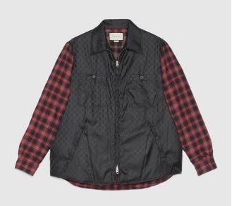 체크 슬리브 디테일의 GG 나일론 셔츠