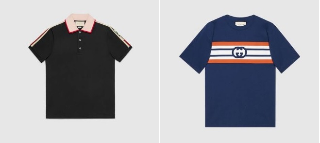 구찌 스트라이프 코튼 폴로 ₩ 720,000 인터로킹 G 스트라이프 프린트 티셔츠 ₩ 600,000