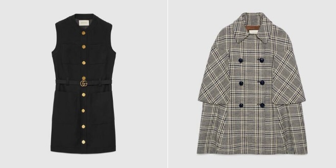 더블 G 디테일의 캐디 실크 울 베스트 ₩ 4,000,000 체크 울 케이프 코트 ₩ 4,700,000
