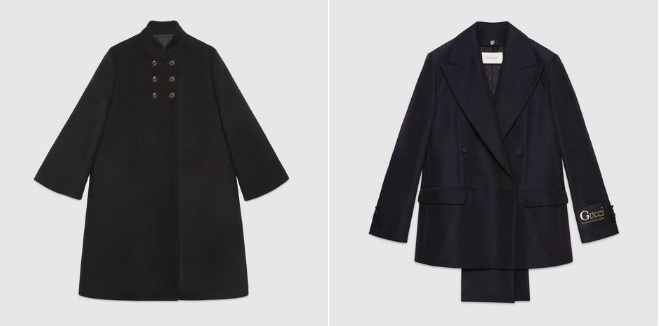 로고 버튼 디테일의 울 코트 ₩ 3,600,000 구찌 라벨 장식의 울 코트 ₩ 5,200,000