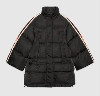 구찌 스트라이프 장식의 패딩 처리된 나일론 케이프 재킷
