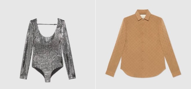 메탈릭 도트 장식의 저지 바디수트 ₩ 1,400,000 여성 체크 GG 실크 크레이프 셔츠 ₩ 1,650,000