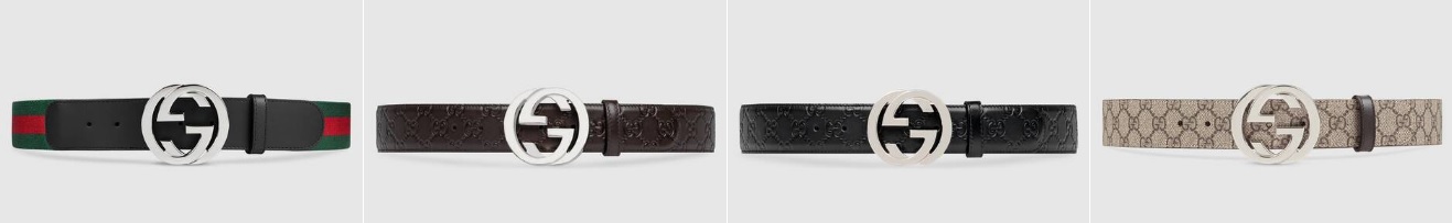 인터로킹 G 버클 웹(Web) 벨트 ₩ 560,000 인터로킹 G 버클 가죽 GG 벨트 ₩ 650,000