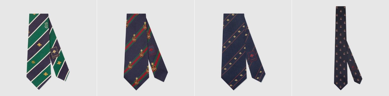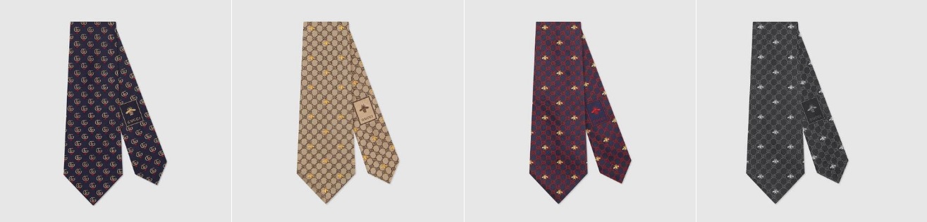 벌 모양의 Web 실크 넥타이 ₩ 300,000 더블 G 크라운 자카드 실크 타이 ₩ 300,000