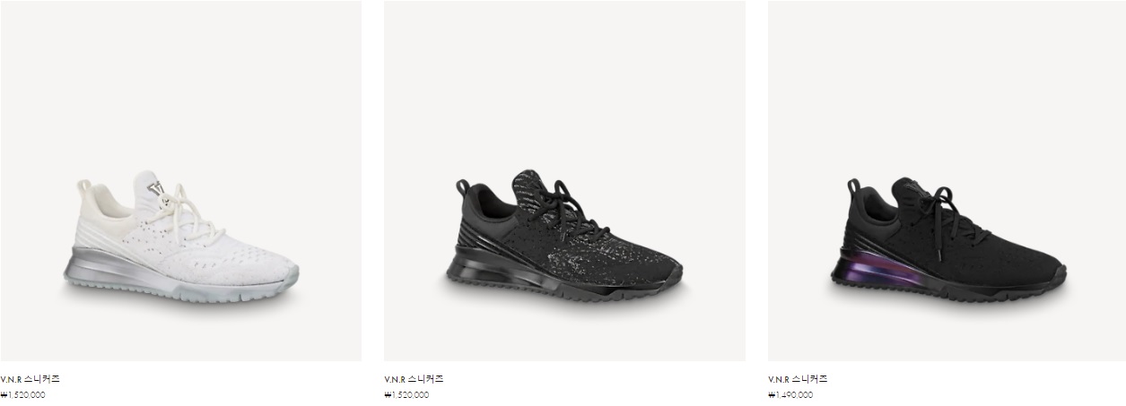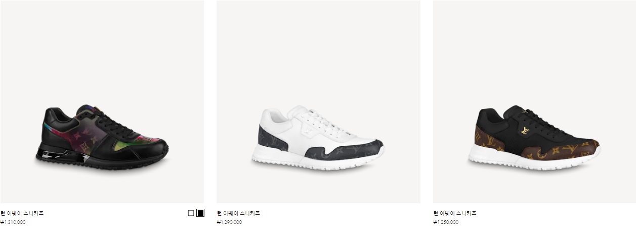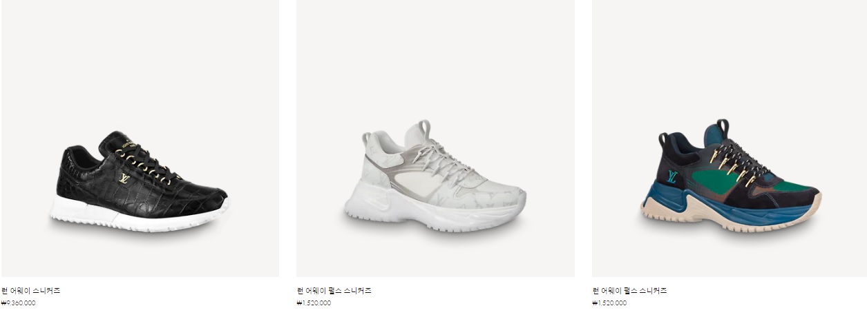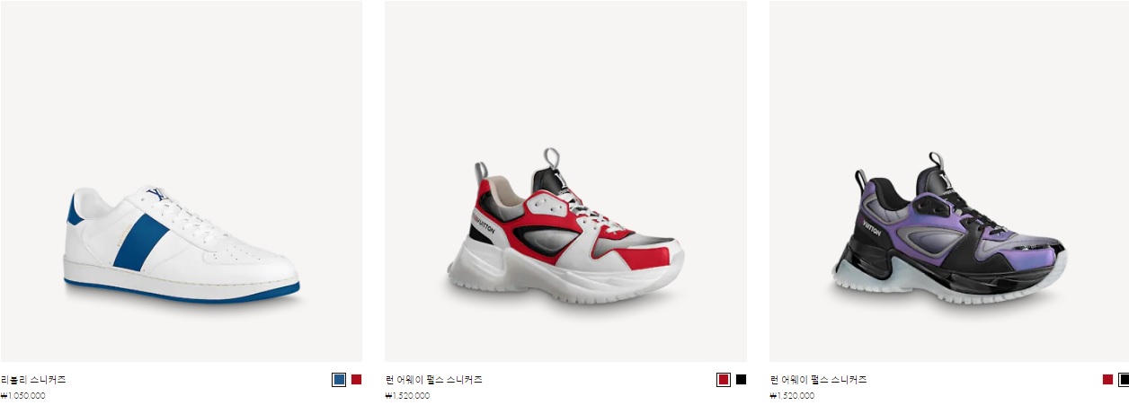 런 어웨이 펄스 스니커즈 ₩1,520,000 지그 재그 스니커즈 ₩1,450,000 LV 러너 스니커즈 ₩1,250,000