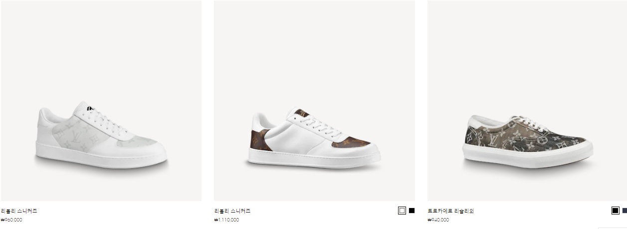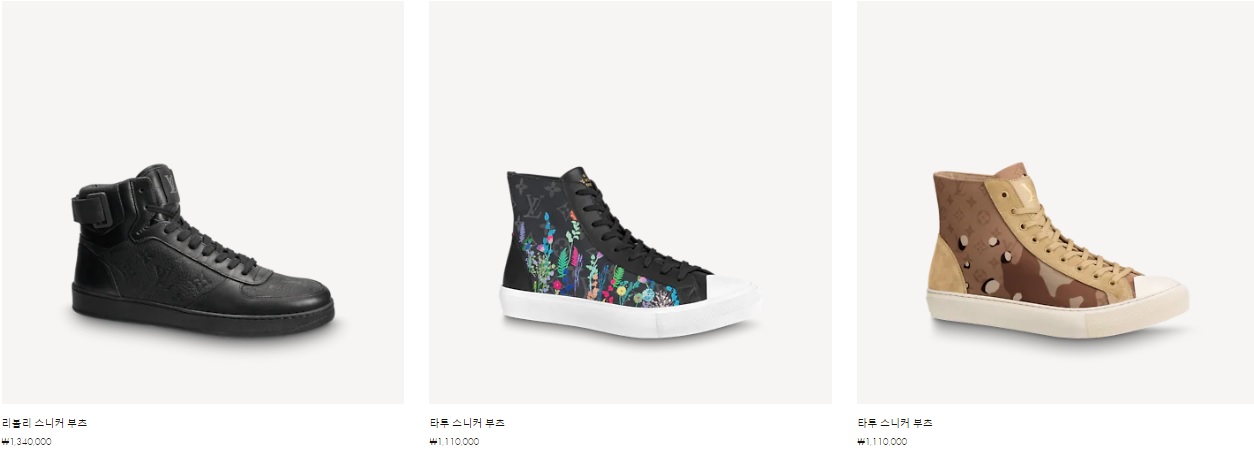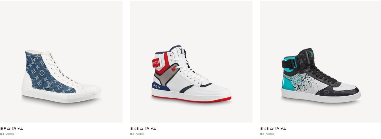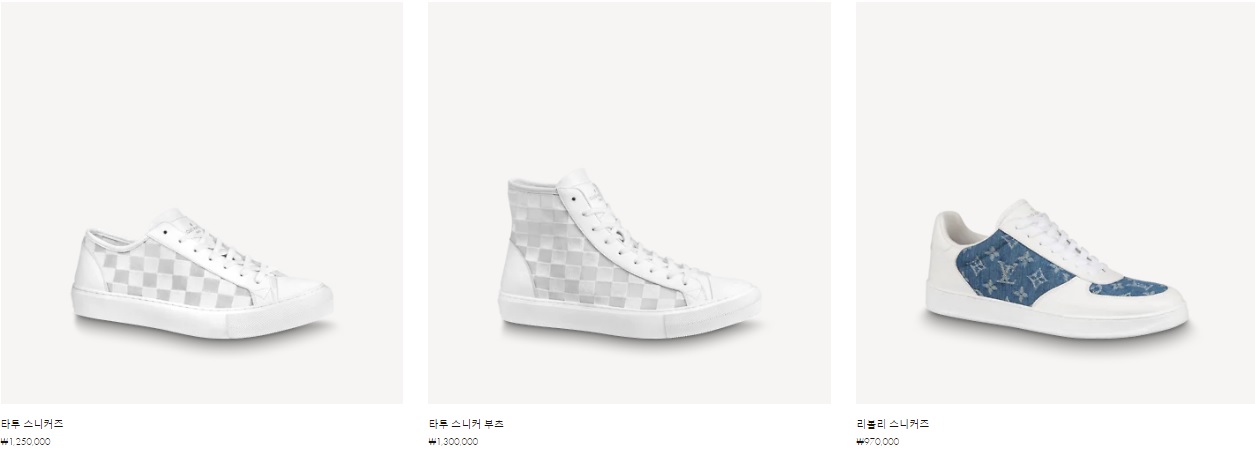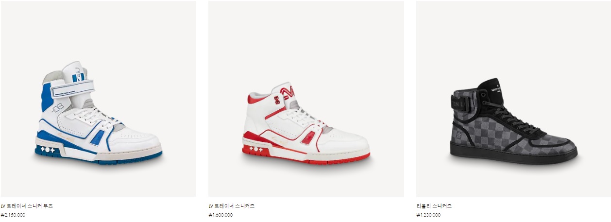 LV 트레이너 스니커 부츠 ₩2,150,000 LV 트레이너 스니커즈 ₩1,600,000 리볼리 스니커즈 ₩1,230,000