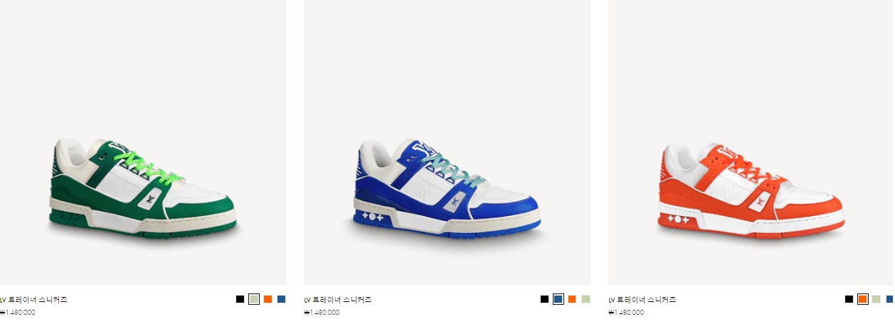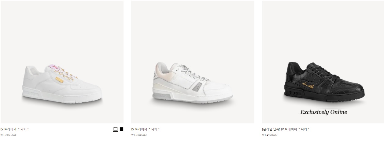 LV 트레이너 스니커즈 ₩1,540,000 LV 트레이너 스니커즈 ₩1,610,000 LV 트레이너 스니커즈 ₩1,650,000