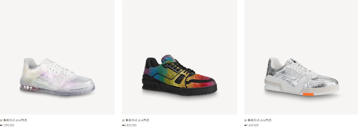 LV 트레이너 스니커즈 ₩1,390,000 LV 트레이너 스니커즈 ₩6,820,000 LV 트레이너 스니커즈 ₩1,630,000
