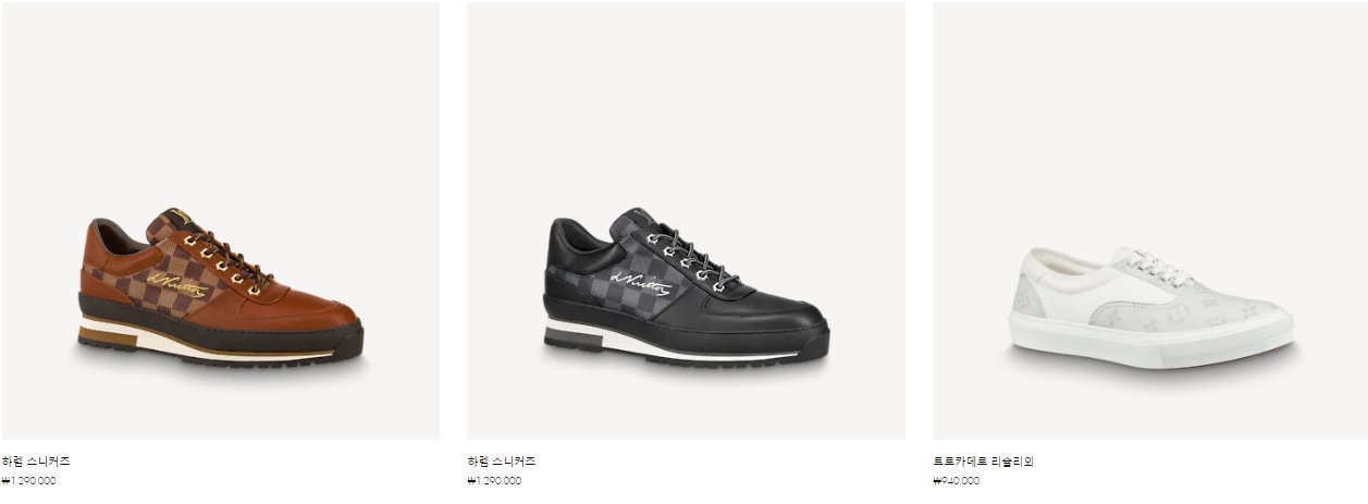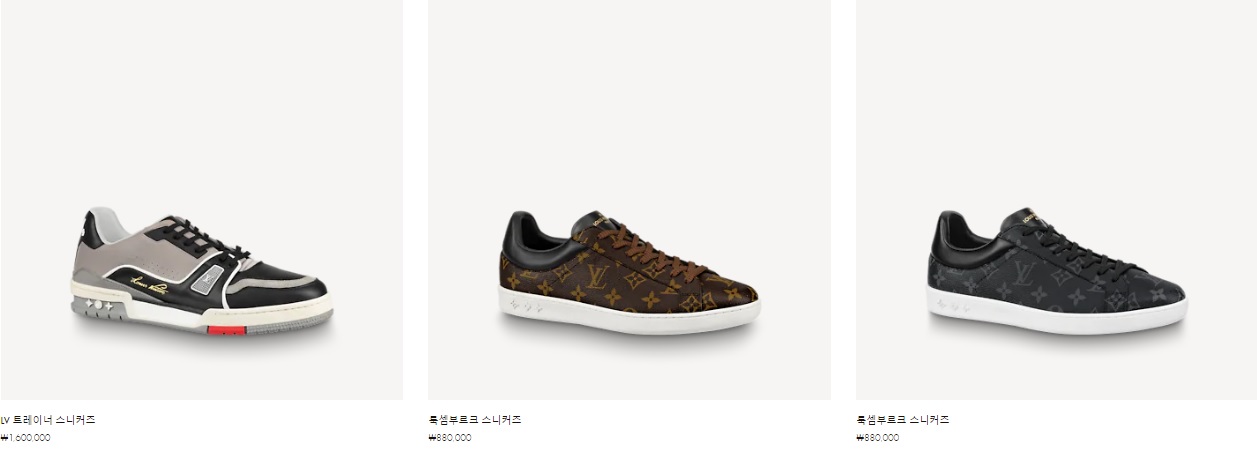 LV 트레이너 스니커즈 ₩1,600,000 룩셈부르크 스니커즈 ₩880,000 룩셈부르크 스니커즈 ₩880,000