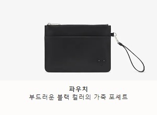 파우치 블랙 컬러의 로만 가죽 소재, 인서트 장식