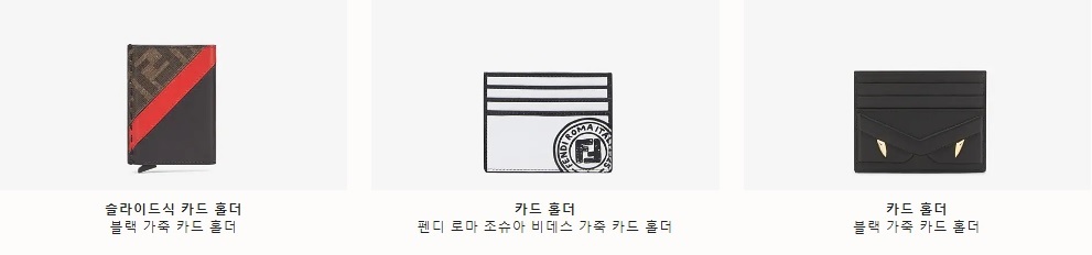 슬라이드식 카드 홀더 블랙 가죽 카드 홀더 € 270,00 카드 홀더 펜디 로마 조슈아 비데스 가죽 카드 홀더 € 290,00