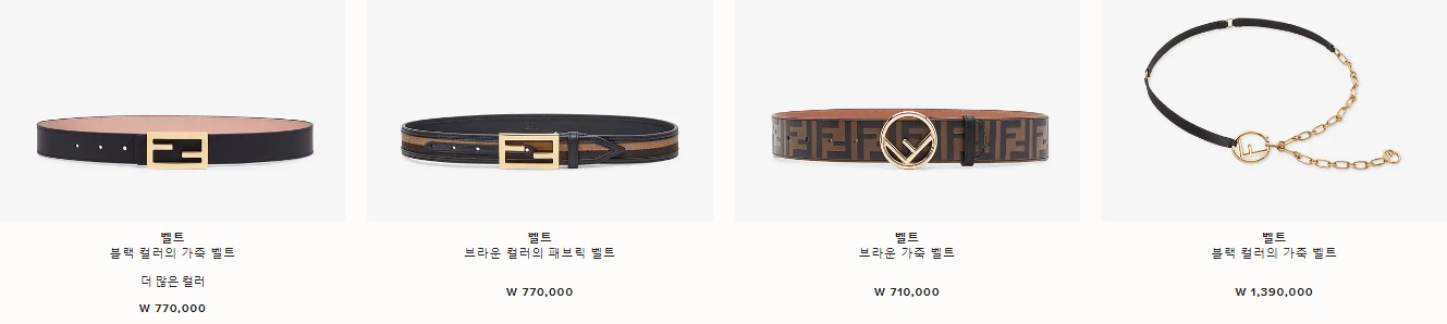 벨트 골드 컬러 메탈 벨트 W 1,900,000 벨트 브라운 컬러의 가죽 벨트 W 770,000