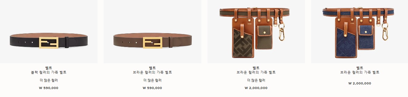 벨트 블랙 컬러의 가죽 벨트 W 1,900,000 벨트 브라운 컬러의 패브릭 벨트 W 2,000,000