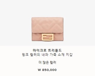 마이크로 트리폴드 핑크 컬러의 내파 가죽 소재 지갑 W 850,000