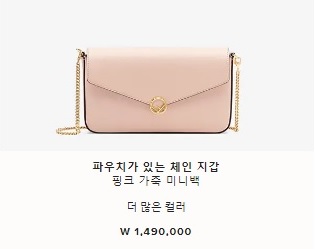 파우치가 있는 체인 지갑 핑크 가죽 미니백 W 1,490,000