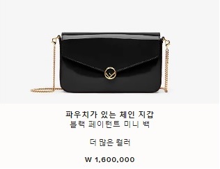 파우치가 있는 체인 지갑 블랙 페이턴트 미니 백 W 1,600,000