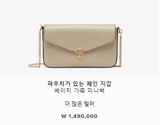 파우치가 있는 체인 지갑 베이지 가죽 미니백 W 1,490,000