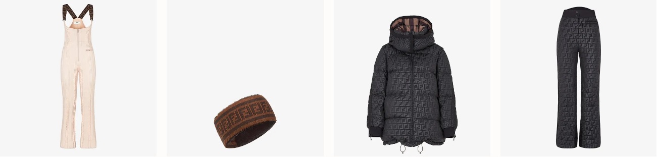 스키 슈트 핑크 컬러의 테크니컬 패브릭 스키 슈트 W 2,350,000 FF 모티프가 있는 스키 헤드밴드 W 640,000