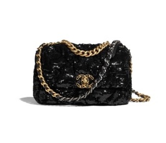 CHANEL 19 플랩 백 시퀸, 골드 메탈, 실버 메탈, 루테늄 메탈 ₩6,900,000