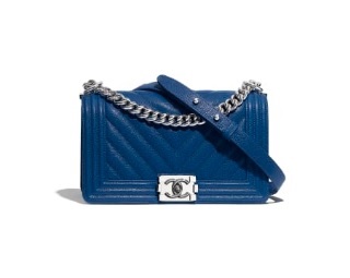 보이 샤넬 플랩 백 그레인드 카프스킨, 실버 메탈 ₩6,570,000