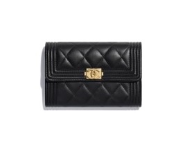 보이 샤넬 플랩 지갑 유광 그레인드 카프스킨, 골드 메탈 ₩1,195,000