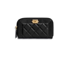 보이 샤넬 지퍼 지갑 그레인드 카프스킨, 골드 메탈 ₩1,038,000