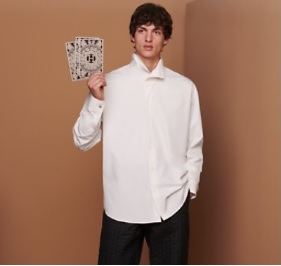 하이 칼라 장식 릴렉스 피티드 셔츠, 컬러: 화이트, ₩ 720,000