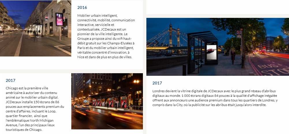2010년 JCDecaux는 전자 디스플레이 차량을 40% 또는 총 6,500 개의 화면으로 늘렸습니다.